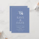 Meddela din speciella dag i stil med den här eleganten dammiga blå blommigt Spara datumkortet. Den här designen har delikata vattenfärgblommor i mjuka blåtoner och klassisk serif-typografi och är perfekt för romantiskt, tidlöst eller trädgårdsininspirerat bröllop. Helt anpassade med dina detaljer, det är en fin ton för firande och låter dina gäster känna till att markera sina kalendrar.
