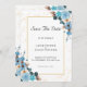 Eleganten sparar datumdesignen med en bukett med vattenfärgsdamm i blåa blommor och en elegant sofistikerad uppsättning typsnitt. Visa samlingslänken på den här sidan om du vill se alla matchande objekt i den här vackra designen.