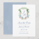 Dusty Blue Blommigt Vapensköld Bröllop spara datum Datumet