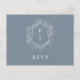 Svarskort för Dusty Blue Blommigt Vapensköld Monogram Bröllop OSA