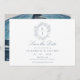 Elegant Dusty Blue Blommigt Vapensköld Monogram Foto Spara datum