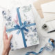 Dusty Blue Blommigt Wrapping Papper Roll Presentpapper