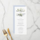 Den här designen har dammiga blå blommigtar och eukalyptus lämnar i skuggor av grönt.