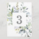 Den här utformningen har dammiga blå blommigtar och eukalyptus löv i skuggor av grönt.