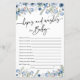 Det här eleganten Baby Shower Hopes & Önskemål-kortet kommer från våra uppsamlingar med tryckta Blommigtar och innehåller dammiga blommigtar med blå vattenfärg med delikata gröna vindruvor, parade med ett modernt typsnitt. Perfekt för alla säsonger. Om du vill göra avancerade ändringar väljer du Anpassa -> Redigera med Design verktyg.