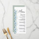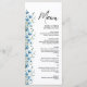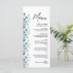 Lägg till lite bohemian land charm till bröllopsmottagningen med den här vackra menyn. Den roliga bohos-chicen är utformad med en delikat spray av lin, periwinkle, eller glöm mig inte som vilda blommor i skuggor av dammig blått och sage-grönt. Personlig med namn och bröllop under snyggtens moderna manustitel är perfekten för att presentera din bröllop-måltid med skönhet och ära.