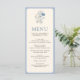 Elegant bröllop-menyn med vackra, rustiska vilda blommor och modern typografi.