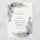 Evoking a tranquil, ethereal mood, this design features a delicate arrangement of dusty blue blossoms and muted golden foliage. The artistic composition creates a sense of gentle elegance and natural beauty, perfect for a refined occasion.