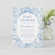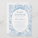 Dusty Blue Bow Chinoiserie Blommigt Baby Shower Inbjudningar
