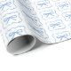 Hand-drawn soft blue watercolor bow and curly ribbon frame pattern wrapping paper