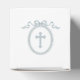 Dusty Blue Bow Grekiska Ram Baptism Cube Presentaskar