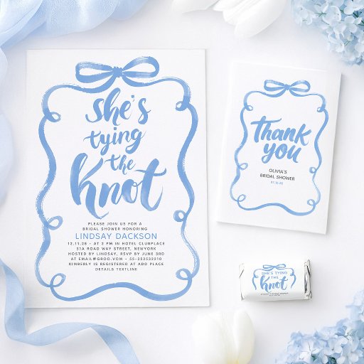 Dusty Blue Bow She's Tying the Knot Bridal Shower Pappersservett