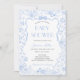 Dusty Blue Bow Toile De Jouy Boy Baby Shower Inbjudningar