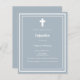 Dusty blue-bakgrund, dekorerad med ett vitt ram och ett vitt kor personaliserat och lägg till namn och detaljer. Vit text. 1 lakan = 1 inbjudan tryckt kant till kant.