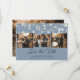 Elegantens personlig med dammigt blått bröllop-foto sparar datumkorten med ett modernt skript. Bröllop spara datum har en fotokollage på 4 bilder mot en dammig blå bakgrund med strängen ljus. Du kan enkelt anpassa den här dammiga blått spara datumkortet med information om bilder och bröllop, inklusive en webbplats för bröllop, om du vill. Skicka ett meddelande om du vill ha anpassningsbar.