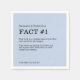 En unik och roligt idé för att uppgradera dina bröllop-servetter. Anpassa dessa blöjor med fakta om bruden och brudgummen. Gör många roligt till fakta om blöjor om nylingarna på deras bröllop, använda den här mallen och få gästerna att prata, en underbar isbrytare, att få dem att hitta mer under dagen. Numret kan anpassas så att du kan göra flera. Enkel med modern typografi med svart text på dammblått. Kontakta mig inte på info@lddesignloft.com om du behöver hjälp med den här designen.