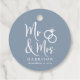 Personlig dammiga blå favärden för bröllop med "Mr & Mrs" skriven i ett stort vitt skript och en vit illustration av två bröllop ringar gått med ihop. Lägg till ditt namn och bröllop-datum.