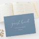 Bröllop gäst bok i dammblått. Anpassa med egna namn, datum och foton