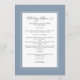 Menykortsdesignen Dusty Blue bröllop har en vacker chic gräns i blått som innehåller en elegant som gör en framställning till vit gräns. Kalligrafi och manus är kol-grått på vit bakgrund. En modern mall innehåller namn av par, bröllop-datum och redigerbar meny alla i ett trendig med unik kalligrafi med skriptdesign. OBS! visningen för datum i bröllop som visas användor lodrät pub eller raden som finns ovanför \ på en tangentbord eller på din smarta enhet med speciella tecken. Du kan också anpassa med valfritt annat tecken.] Kortets baksida är solid Dusty Blue. Kontakta oss på InvitationSuites@gmail.com med frågor eller speciella förfrågningar!