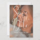 Det här dammiga blåa eleganten-skriptet bröllop spara-the-date-inbjudan kan vara personlig med dina två speciella foton, bröllopsdag-information och bröllop webbplats QR-kod. Designad av Thisisnotme©
