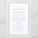 Elegant, minimalistiskt dammigt blått och vitt bröllop-ceremoniprogram har en enkel modern utformning med en dubbla som ramar in gräns i dammblått på en skarp vit bakgrund. Traditionell, klassisk formulering ger en tidlös sofistikering. Anpassa ceremonin i bröllop för dina gäster i trendigets dammiga kalligrafibrev och skript. Kortets baksida matchar med dammig blå på skarp vit och handlar om din bröllopsfest. Om du vill ha optimala resultat ersätter du mallinformationen med din egen information som lämnar mellanrummet mellan stycken som i exemplet. Kapitalisera och använda allt nedre fodral där så anges. Kontakta mig gärna på invitationsuites@gmail.com eller med meddelandefunktionen om du har frågor om detta eller någon av våra produkter eller har en begäran från anpassningsbar färg.
