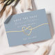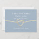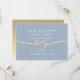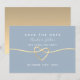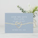 Minimalistiskt blått bröllop spara datum-kort med ett romantiskt guld-rep- och elegant-skript. Lägg märke till din stora dag i tidlös stil. Fullt anpassade med namn och datum. Behöver du hjälp? E-post: bpkolman@gmail.com
