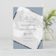 Temapartyets moderna Spara datumsymbolen har en vinklad fotoutdragning och förlovningens foto som återfall till ditt meddelande om förlovningen - ge Spara datum ett modernt geometriskt utseende. Tyngdpunkten färg för denna minimalistinna datum är dammig blå (#8F9FAF). Bilden på förlovningen konverteras automatiskt till svart och vitt på framsidan och upprepas på baksidan i fullt. Designen accentueras med handskriven typografi parad med modern blocktext. #SavetheDate #ModernWedding #PhotoSaveTheDate #SpringWedding