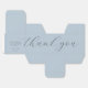 Chic och snyggt. Den här bröllopsförmånslådan innehåller ett mörk-penselskriptteckensnitt för contemporary-grått i valfri text. Välj att säga "Tack eller välkommen". Ett litet budskap finns på baksidan för gästerna, tillsammans med datumet bröllop och paret namn. Väljaren är klädd i mycket stilig dammblå jacka på alla sidor med vitt insida. Personligen för att göra det till en speciell gåva.