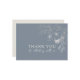 Enkelt, elegant, vintage blommigt, dammigt blått bröllop-tack, med sofistikerad text från vildblommans periwinkle snöre och anpassningsbar tillbaka.