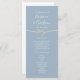 Vi presenterar vårt elegant dammiga blå bröllopsprogram. Med sin minimalistiska utformning och moderna estetik, med ett charmigt guld-rep i handen, framstår detta program som tidlöst elegant och sofistikerat. Följ med dina gäster genom din ceremoni med stil och tack vare ditt temas skönhet och symbolik. Låt det här krävande bröllopsprogrammet vara perfekten som komplement till firande när du "binder knuten" till ditt älskade.