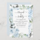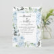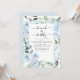 Dusty Blue Blommigt Ro och Eucalyptus Botanical Grey Watercolor Vår eller Summer Bröllop Brunch och BubLY Champagne Inbjudningskort för möhippa - innehåller vackra och elegant manustypografi med moderna tropiska botaniska blommor och grönt för att den speciella bruden ska vara firande.