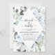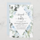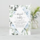 Dusty Blue Blommigt Ro och Eucalyptus Botanical Grey Watercolor Vår eller Summer Bröllop Brunch och BubLY Champagne Inbjudningskort för möhippa - innehåller vackra och elegant manustypografi med moderna tropiska botaniska blommor och grönt för att den speciella bruden ska vara firande.