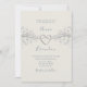Elegant modern, enkel kalligrafi manusskript dammig blå bröllopsinbjudning med silver-repor och gyldad blommigt snöre.