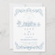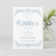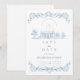An elegant minimalist wedding design featuring refined baroque line art in soft dusty blue tones. The symmetrical ornamental frame and airy white background create a timeless, European-inspired look that feels both classic and modern. Ideal for couples who love understated luxury, fine detailing, and a calm, sophisticated aesthetic.