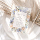 Inbjudningskort för möhippan har en vattenfärgsfärgad blommigt ram med elegant blommor i varierande nyanser av dammblått, pastellfärgad lila, vinkan och grädde. Med sin sofistikerade blomma ram och med hänsyn till detaljerna kommer denna inbjudan att ange tonen för en minnesvärd och elegant möhippa. Få redot att fira med bruden när hon förbereder sig för sin stora dag!