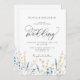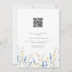 Handmålad bröllopsinbjudan för blommigt med vattenfärg med vild blommor i skuggor av dammigt blått och gult med modernt kalligrafi-skript och QR-kod med detaljer i baksidan. Fin elegant vattenfärgsblommigt i en bröllopsinbjudan perfekt för bröllop och utomhussommartid i bröllop. Du kan anpassa ordalydelsen, teckensnittet stil, färg och storlekt framför och bakom kortet. Kontakta mig gärna om du vill ha matchande artiklar.
