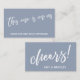 Denna svits utmärkande drag beror på det moderna, handskrivna typsnittet som används för accentfraser. I denna pjäs användes det handskrivna typsnittet för att skapa en grafik som visar orden "this one is on us", placerad på framsidan, och "cheers!" på baksidan. Använd mallfälten för att lägga till dina personliga uppgifter och gör denna unika, moderna design till din egen. Den dammiga blå bakgrunden kan ändras till valfri färg du föredrar. Vänligen kontakta oss med eventuella specialförfrågningar eller för anpassningshjälp. // 100 //