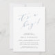 Den enkla och elegant inbjudan till babyduschen innehåller "det är en pojke" i dammig blått kalligrafibrev. Anpassa med din babyduschinformation under. Anpassa den pappra typen eller formen för att göra eleganten till en egen utformning och lägg till information om babyduschen i baksidan, så att behovet av djurutrymmeskort försvinner. Inkluderar tre anpassaden fält (visas med en bok-begäran, bläddringsraff och registerinfo) och en anpassningsbar QR-kod för registret.