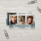 Affärskort med 4 av dina egna foton (valfritt) i en portfölj med grått- och dammiga blå bakgrundsdesign med vitt polka dots.