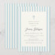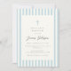 Luxuriös och elegant baptisminbjudan till pojkar som har blå och vit rand och en blå kor på elfenbensbakgrund. Om du vill ha en överordnad texturerad stil väljer du den pappra typen "Laid".