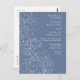 Den här inbjudan från elegant bröllop innehåller en delikat blommigt för prydnadsmönster med blommor, fåglar och löv i dammig blå bakgrund. Texten kombinerar handskript och serif typsnitt för en snyggt och ett modernt utseende. Perfekt för vinter- eller höstfallbröllop.