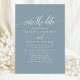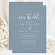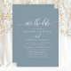 Den här minimalisten sparar datumkortet med vackra dammiga blå nyanser parade med kalligrafiskript för elegant. Med en modern och enkel utformning är detta mångsidiga kort perfekt för vilken säsong som helst - vår, sommar, vinter eller fall. Det utesluter en snyggt- och klassvib, perfekt för ett romantiskt, chic- eller sofistikerat bröllop-tema.