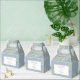 Elegant vattenfärgsgrönt bröllop-favoritlåda med delikat grönt löv på en dammig blå bakgrund som ger ditt tack till ditt budskap i modern typografi. Ett perfekt sätt att tacka gästerna! Designad av Thisisnotme©