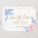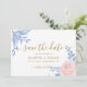 Dusty Blue Elegant Rosa Blommigt Rustic Bröllop Spara Datumet
