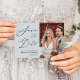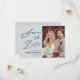 Dusty Blue Elegant Script Modern Photo Minimalist Bröllop spara datum-inbjudningskort. Låt er familj, vänner och kolleger veta att ni har fastställt ett datum för ert bröllop firande med detta elegant, snyggt och det moderna bröllop spara datum-inbjudan. Alla texterna är i förväg ordnade så att du enkelt och snabbt kan anpassa dig med dina egna detaljer.