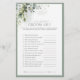 Modern, elegant möhippa-spel "vad som stod i brudgummen" som innehåller botaniskt löv och eukalyptus av lush grått grönt och gränsar till blek eucalyptus blue grått grönt. Anpassa dina frågor i mjuk, svart och accentuerad med vacker, modern, handskriven kalligrafi. En del av en samordnad svit. Visa sviten här: https://www.zazzle.com/collections/elegant_eucalyptus_green_botanical_bridal_shower-119330045467288535 Kontakta designern för matchande produkter. Copyright Anastasia Surridge for Elegant Inbjudan, alla höger reserverade sig.