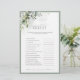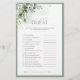 Modern, elegant-möhippa-spel "hitta gästen" med botaniska löv och eukalyptus av lush grått-grönt och gränsar till blek eucalyptus blue grått-grönt. Anpassa dina frågor i mjuk, svart och accentuerad med vacker, modern, handskriven kalligrafi. En del av en samordnad svit. Visa sviten här: https://www.zazzle.com/collections/elegant_eucalyptus_green_botanical_bridal_shower-119330045467288535 Kontakta designern för matchande produkter. Copyright Anastasia Surridge for Elegant Inbjudan, alla höger reserverade sig.