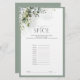 Modern, elegant möhippa-spel "Namn To Spice" med botaniska löv och eukalyptus av lush grått-grönt och gränsade till blek eucalyptus blue grått grönt. En del av en samordnad svit. Visa sviten här: https://www.zazzle.com/collections/elegant_eucalyptus_green_botanical_bridal_shower-119330045467288535 Kontakta designern för matchande produkter. Copyright Anastasia Surridge for Elegant Inbjudan, alla höger reserverade sig.