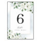 Dusty blue eucalyptus greenery blommigt bröllop bordsnummer