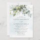 Dusty Blue Eucalyptus Greenery Succulent Bröllop Inbjudningar
